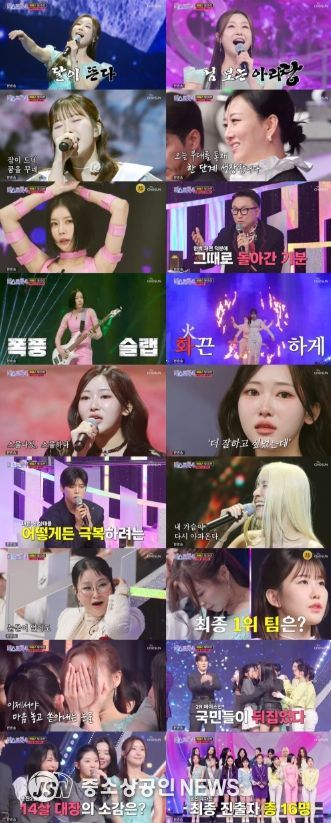 뽕진2 이소나 윤윤서 적우 채윤 김혜진과 함께 패자부활로 살아남은 흥행열차 허찬미 홍성윤 정혜린, 비타오걸 염유리 장혜리 김산하, 미스청바지 길려원 윤태화 김다나, 아뜨걸스 이엘리야 유미 등 총 16명이 다음 라운드 진출을 확정했다. 16인의 트롯퀸은 준결승전을 향한 마지막 관문, 본선 4차 레전드 미션에 뛰어든다. TV CHOSUN '미스트롯4'는 매주 목요일 밤 10시 방송된다.