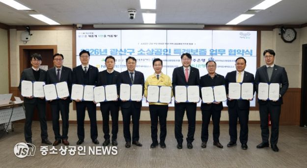 광주 광산구가 6일 구청 2층 회의실에서 광주신용보증재단(이사장 염규송), 지역 금융기관 8개소(△광주어룡신협·광주하남신협·우산신협 △광주은행 △하나은행 △농협△서광주새마을금고·한마음새마을금고)와 함께 ‘2026년 광산구 소상공인 특례보증 업무협약’을 체결했다.