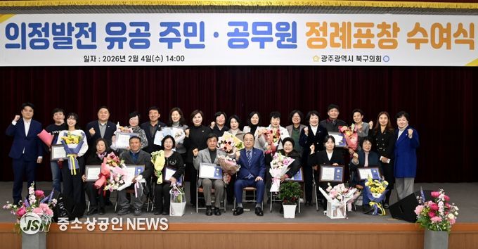 광주 북구의회는 지난 4일, 지역사회 발전에 헌신한 유공자들의 공로를 기리기 위해 2026년도 새해 첫 정례표창 수여식을 개최했다.