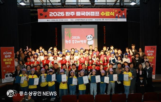 이번 수료식은 초등학교 2학년부터 중학교 1학년까지 학생 43명이 참여한 중국어캠프의 교육 성과를 공유하는 자리로, 유희태 완주군수와 유의식 군의회 의장, 재단 이사, 학부모 등 100여 명이 참석해 학생들의 성장을 함께 축하했다.
