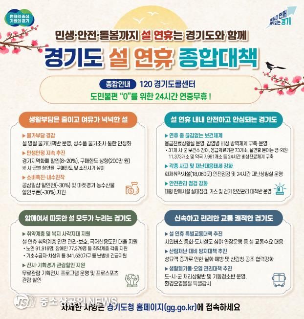 경기도가 도민들이 따뜻하고 편안한 명절을 보낼 수 있도록 ‘설 연휴 종합대책’을 추진한다.