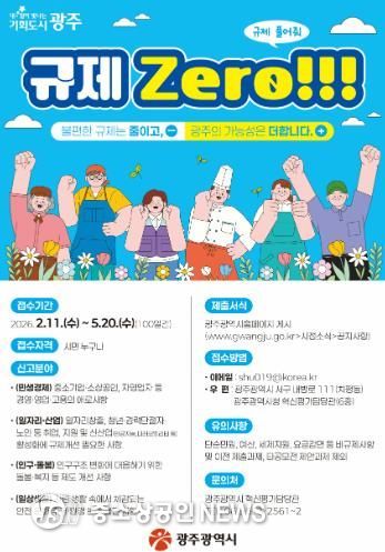 광주광역시는 ‘불합리한 규제 집중발굴, 규제 제로’를 목표로 11일부터 5월 20일까지 100일 동안 불합리한 규제 집중발굴 기간을 운영한다.