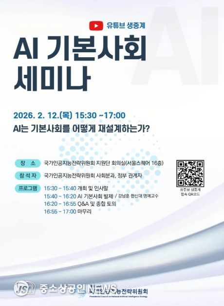 국가인공지능전략위원회는 2월 12일 오후 3시 30분부터 AI 기본사회 세미나를 개최한다. 이번 세미나는 AI 기술 확산이 노동ㆍ복지ㆍ분배ㆍ사회안전망 등 경제ㆍ사회 정책 전반에 미치는 영향을 종합적으로 살펴보고, AI 시대에 부합하는 기본사회 제도 설계 방향에 대한 시사점을 도출하기 위해 마련됐다. 특히 AI 기술의 확산에 따라 부와 생산수단이 특정 주체에 집중됨과 동시에 고용ㆍ소득 양극화를 포함한 구조적 변화가 예상되는 상황에서, 기본사회 정책이 어떤 역할과 방향성을 갖고 추진되어야 하는지에 대한 심도 있는 논의가 진행될 예정이다.