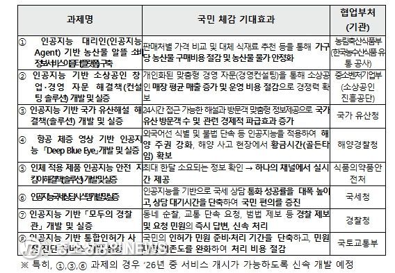 과학기술정보통신부는 '인공지능 민생 10대 과제(프로젝트)'를 본격 추진하기 위해, 과제(프로젝트) 중 8개 과제의 사업자 선정을 위한 공모를 2월 11일부터 개시한다고 밝혔다.