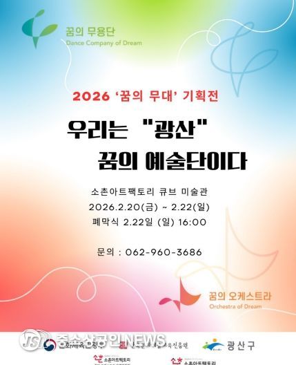 광주 광산구는 20일부터 22일까지 소촌아트팩토리 큐브미술관에서 2026 ‘꿈의 무대’ 아카이빙전 ‘우리는 ‘광산’ 꿈의 예술단이다‘를 연다고 밝혔다.