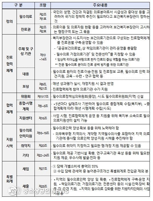 지역필수의료법의 주요 내용은 다음과 같다.