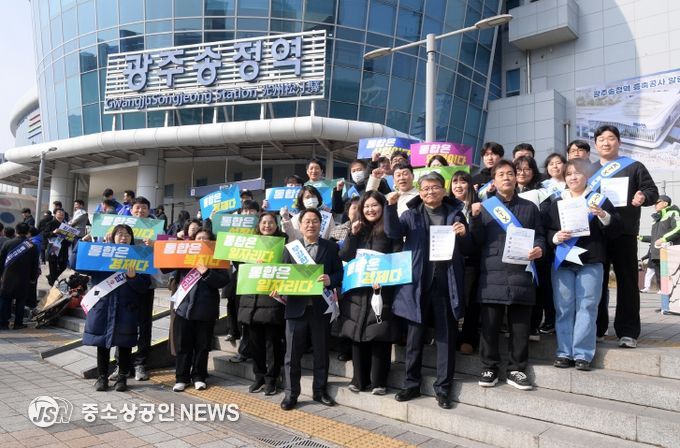 광주광역시는 14일 광주송정역에서 설 명절 귀성객을 대상으로 KTX 호남선 단계적 증편과 광주전남 통합 소식을 알리기 위한 홍보 캠페인을 펼쳤다.