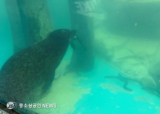 물범 ‘초롱’이는 두 딸 ‘희망’, ‘몰랑’이와 함께 생장어 사냥을 즐기며 스트레스를 날렸다. 막내딸 몰랑이는 어느덧 희망이 못지않은 수영실력을 뽐내며 장어를 쫓았다.