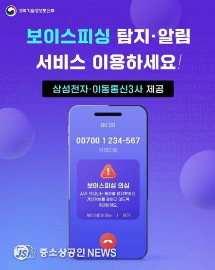 국민들의 보이스피싱 피해 방지를 위해 삼성전자와 이동통신 3사가 제공하는 인공지능 기반 보이스피싱 탐지·알림 서비스를 이용해 주시기 바랍니다.