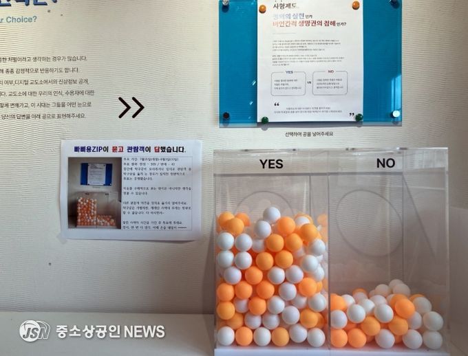 장흥군은 지난 11일 전시 연계 참여 프로그램으로 운영한 ‘사형제도 인식 투표’ 결과를 공개했다.