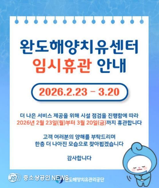 완도해양치유센터가 더 나은 치유 서비스 제공과 환경 개선을 위해 2월 23일부터 3월 20일까지 임시 휴관에 들어간다.