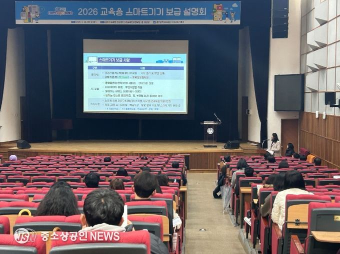 시교육청은 스마트기기가 원활하게 보급될 수 있도록 지난 24일 광주AI교육원 전산센터 대강당에서 중·특수학교 업무담당자 120여 명을 대상으로 ‘2026년 교육용 스마트기기 보급 설명회’를 개최했다.