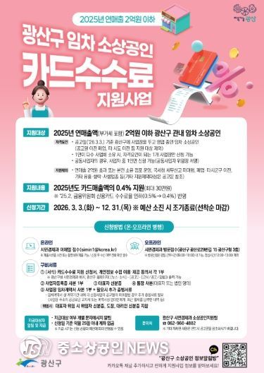 광주 광산구가 민생경제 회복을 위해 광산구 임차 소상공인 카드수수료 지원사업을 실시한다.
