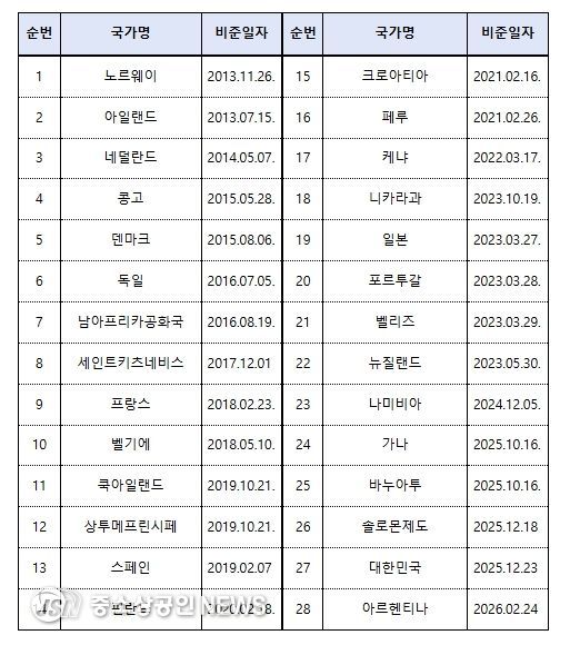 해양수산부는 아르헨티나가 2월 24일 28번째로 ‘케이프타운 협정’에 비준서를 기탁함으로써 협정 발효 요건이 충족됐고, 내년도 2월 24일부터 동 협정이 발효될 예정이라고 밝혔다.