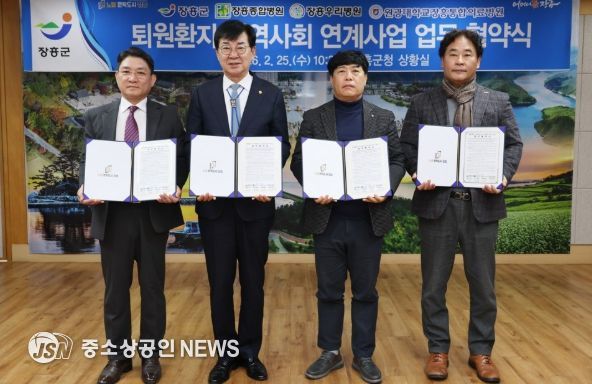장흥군은 지난 25일 군청 상황실에서 퇴원환자의 지역사회 안정적 복귀를 지원하기 위해 장흥종합병원, 장흥우리병원, 장흥통합의료병원과 '퇴원환자 지역사회 연계사업' 업무협약을 체결했다고 밝혔다.