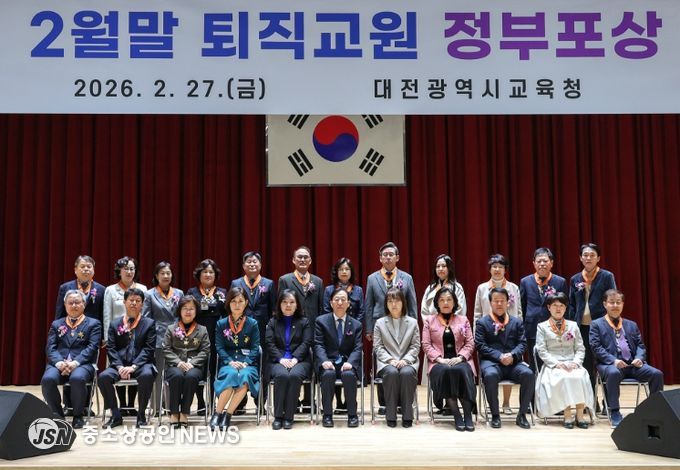 대전시교육청은 2월 27일, 대전시교육청 대강당에서 퇴직교원 정부포상 대상자와 가족 등이 참석한 가운데 ‘2026년 2월말 퇴직교원 정부포상 전수식’을 개최했다고 밝혔다.