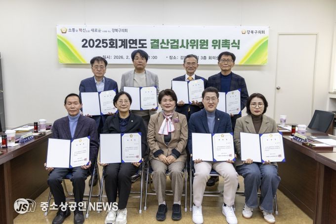 강북구의회가 지난 2월 26일 의회 3층 의원회의실에서 2025회계연도 결산검사위원 위촉식을 열고, 위원들에게 위촉장을 수여했다.