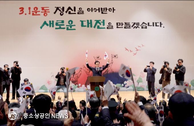 대전시의회 조원휘 의장은 1일 대전시청에서 개최된 제107주년 3.1절 기념식에 참석해 시민들과 함께 만세삼창을 외치며 독립정신 계승에 앞장섰다.
