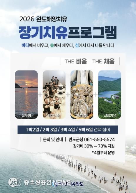 완도군에서는 4월부터 해양치유 활성화 및 효과 검증, 생활 인구를 확대하기 위해 ‘장기 체류형 해양치유 프로그램’을 운영한다.