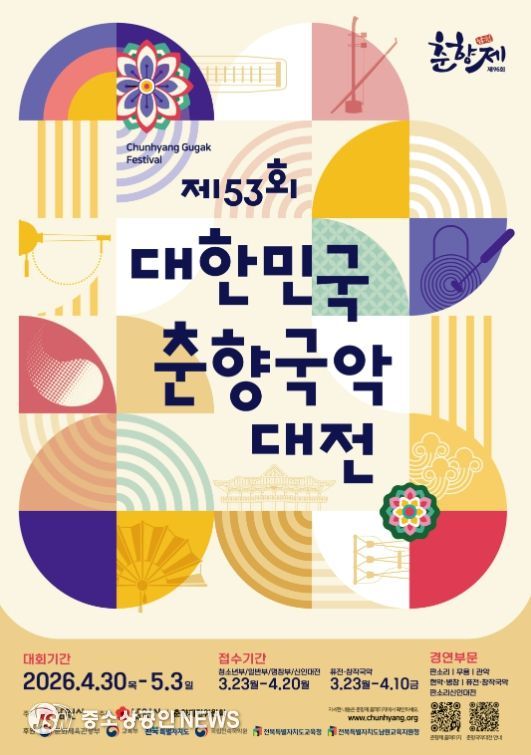한편, 제53회 춘향국악대전의 상세 접수 일정과 세부 사항은 3월 초 남원시 누리집과 춘향제전위원회 누리집 등을 통해 공지될 예정이다.
