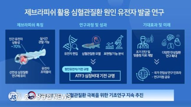 국립보건연구원은 제브라피쉬 동물모델을 활용해 유전성 심혈관질환의 원인이 되는 유전자를 찾고, 질환이 생기는 과정을 밝히는 연구를 수행하고 있다.