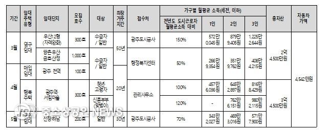 광주광역시도시공사가 물가와 임대료 상승으로 주거 불안을 겪는 무주택 서민과 청년층을 위해 3월부터 5월까지 공공임대주택을 유형별로 순차 공급한다. 이를 위해 공공임대주택의 입주 절차와 자격 요건을 쉽게 확인할 수 있도록 5단계 ‘공공임대주택 릴레이 공급’ 타임라인을 전격 발표했다.