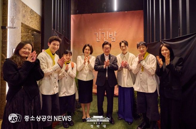 이재명 대통령과 김혜경 여사는 오늘 저녁 서울 대학로 링크아트센터드림에서 창작뮤지컬 '긴긴밤'을 관람하고, 출연진과 제작진을 격려했다.
