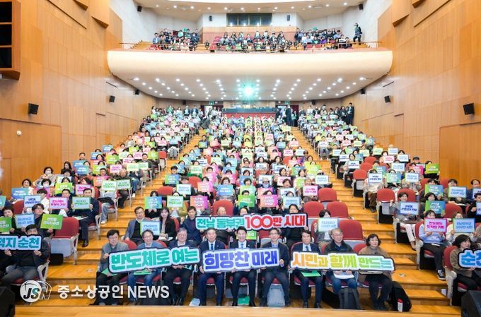 순천시가 19일 문화건강센터에서 ‘탄소중립균형성장을 위한 「RE100 반도체 국가산단과 기업 유치 시민 포럼」’을 열고 전남 동부권 RE100 반도체 국가산단 유치 비전을 공유했다.