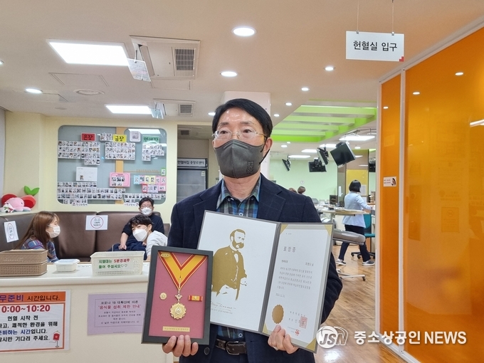 대한적십자사 "헌혈 유공장 명예대장"상을 수여받은 광주광역시 서구체육회 최영도상임부회장.