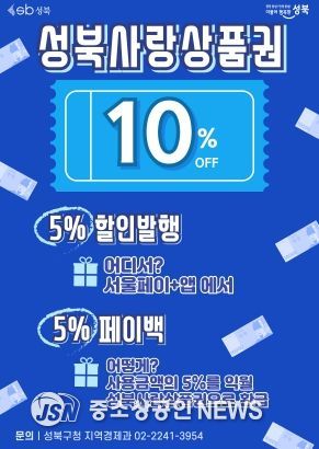 (중소상공인뉴스) 10월 11일 금요일 오전 10시, 서울 성북구가 9월부터 진행한 성북사랑상품권 5% 페이백 빅 이벤트의 첫 페이백을 지급했다고 밝혔다.