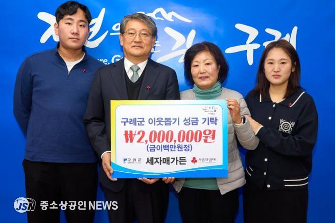 전남 구례군은 지난 9일 광의면 소재 세자매가든(대표 김희란)이 관내 어려운 이웃을 돕기 위해 성금 2백만 원을 기탁하며 지역 사회에 따뜻한 온기를 더했다고 밝혔다.