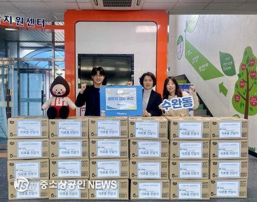 수완동 코코마트는 다자녀를 양육하는 한부모가족 10세대에 참치 등 식료품 10박스(100만 원 상당)를 마을 곳곳에 있는 가정에 나눔했다.