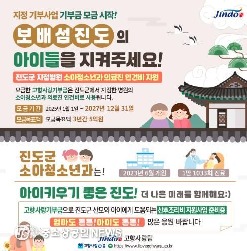 진도군은 ‘보배섬 진도의 아이들을 지켜주세요’란 제목의 특정사업 기부금을 모금하고 있다.