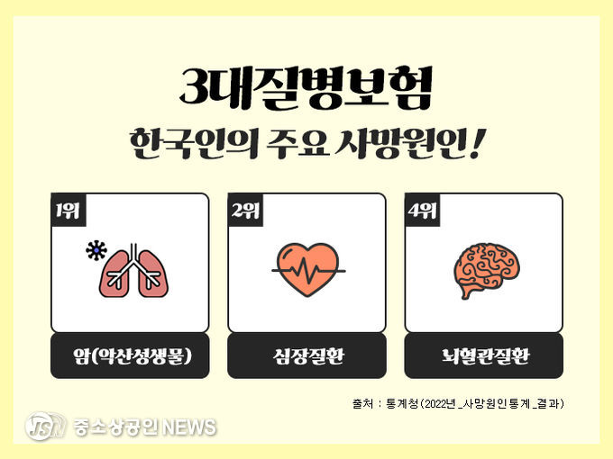 한국인의 주요 사망원인중에 암, 뇌혈관질환, 심혈관질환은 흔히 3대질병이라 일컬어지며 살아가면서 가장 먼저 대비해야 하는 중대질병으로 항상 강조되고 있다. 이들 질병에 미리 대비하기 위해 가입하는 것이 진단비보험인데, 이러한 3대질병진단비를 중점으로 보장하는 보장성보험이 3대진단비보험 이다. 3대질병진단비보험은 각각의 질병에 주목해서 보장하기도 하지만, 나에게 맞는 추가 특약을 잘 골라서 가입한다면 종합건강보험으로도 충분히 활용도가 높다.
