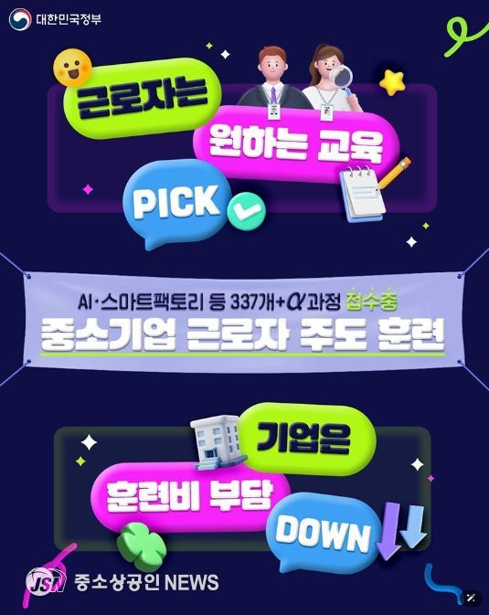 중소기업에서 일하시는 분들이 직무와 관련된 교육훈련을 부담 없이 받을 수 있도록!