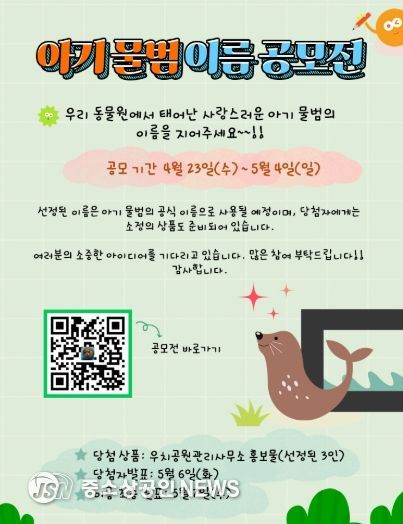 성창민 우치공원관리사무소장은 “아기 물범은 많은 시민에게 사랑받는 인기 동물”이라며 “이름공모전을 통해 시민과 동물 간 교감이 더욱 풍성해지길 기대한다”고 말했다.