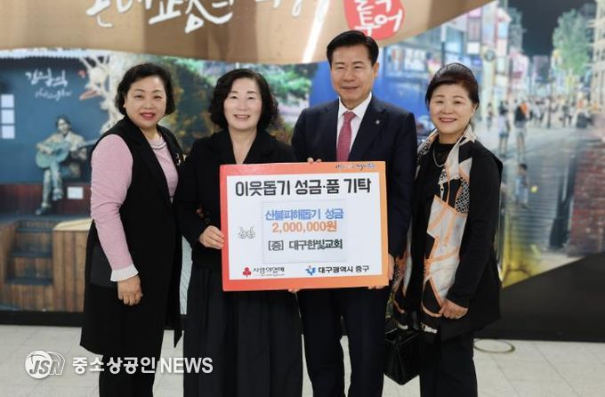 대구한빛교회는 28일 대구 중구청을 방문해 경북 산불 피해 복구를 위한 성금 200만 원을 기탁했다.