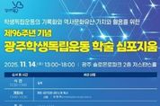 광주광역시 북구가 오는 14일 광주 솔로몬로파크 저스티스홀에서 ‘학생독립운동 96주년 기념 학술 심포지엄’을 개최한다고 13일 밝혔다. 심포지엄은 ‘학생독립운동의 기록화 및 역사문화유산의 가치와 활용’이라는 주제로 ‘학생독립운동’의 역사적 의미를 재조명하고 문화유산 활용 방안을 모색하기 위해 마련됐다. ‘학생독립운동’은 1929년 11월 3일 광주에서 시작해 전국으로 확산된 항일 시위운동으로 당시 전국 320여 개가 넘는 학교에서 54,000여 명 이상의 학생이 참여해 3·1운동 이후 최대 규모의 항일운동으로 평가받고 있다. 최근에는 당시 학생들의 편지, 옥중 기록, 전국 각지의 격문과 재판문서 등의 기록물들을 유네스코 세계기록유산으로 등재하려는 움직임도 활발하게 일어나고 있다. 이러한 상황에서 북구는 세계기록유산 등재 분위기 및 주민 공감대 형성, 그리고 학생독립운동 사적지 등 관련 문화유산 보존 논의가 필요하다고 판단해 지난달부터 본격적으로 심포지엄을 준비해왔다. 이번 심포지엄은 관련 분야 교수·전문가, 관계 공무원, 주민 등 100여 명이 참석한 가운데 ▲개회식 ▲주제발표 ▲종합토
