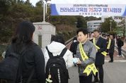 전라남도교육청이 2026학년도 대학수학능력시험일인 13일 시험장을 찾아 수험생을 응원했다. 김대중 교육감을 비롯한 도교육청 간부들은 이날 오전 75지구 제7시험장인 순천복성고등학교 교문 앞에서 시험을 치르기 위해 들어서는 수험생들을 반갑게 맞이하며 최선을 다해줄 것을 당부했다. 순천복성고 현장에는 김 교육감과 박철완 중등교육과장, 허동균 순천교육지원청교육장, 강종수 순천복성고 교장 등이 “파이팅”을 외치며 수능 대박을 기원했다. 이날 오전 황성환 부교육감도 교육청 간부들과 함께 문태고등학교를 방문해 수험생들을 격려했다. 김대중 교육감은 “모든 수험생 여러분, 정말 수고 많았다. 오늘은 여러분의 날이다”며 “결과에 대한 부담은 내려놓고, 그동안의 노력이 만들어준 자신감을 믿으며 차분히, 끝까지 최선을 다하길 바란다”고 말했다. 한편, 이날 목포·여수·순천·나주·광양·담양·해남 등 7개 시험지구, 총 46개 시험장에서는 1만 4,952명의 수험생이 2026학년도 대입 수능시험을 치른다.