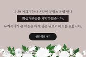 광주시교육청은 12·29 여객기 참사 1주기를 맞아 오는 29일까지 누리집에 온라인 추모공간을 운영한다. 시교육청은 12·29 여객기 참사 희생자를 추모하고, 사회적 참사에 대한 경각심을 갖기 위해 온라인 추모공간을 마련했다. 오프라인 추모를 희망하는 시민에 대해서는 광주시에서 전일빌딩245에 설치한 시민분향소를 안내했다. 또 이정선 교육감을 비롯한 시교육청 직원들은 오는 29일 무안국제공항에서 열리는 정부 공식 추모행사와 5·18민주광장에서 열리는 시민추모대회에 참석해 희생자의 영면을 기원한다. 이정선 교육감은 “안타까운 사건이 발생한지 벌써 1년이 지났다”며 “희생자의 넋을 위로하고, 안전한 사회가 조성되도록 최선을 다하겠다”고 말했다.