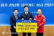 광주은행은 26일 전남도청에서 열린 ‘광주·전남愛사랑카드 고향사랑 기부금 전달식’에 참석해 전남지역 복지사각지대 해소를 위한 고향사랑기부금 6,360만 원을 전달했다고 밝혔다. 이날 전달식에는 김종민 광주은행 부행장과 강위원 전라남도 경제부지사, 김동극 전남사랑의열매 사무처장을 비롯한 관계자들이 참석해 지역사회 상생을 위한 뜻을 함께했다. 이번 기부금은 광주은행의 사회공헌형 금융상품인 ‘광주·전남愛사랑카드’ 이용 금액의 일부로 조성됐다. 광주은행은 앞서 지난 12월 1일에도 광주지역에 9,578만원의 고향사랑기부금을 전달하는 등 지속적인 지역 나눔을 실천하고 있다. ‘광주·전남愛사랑카드’는 광주은행이 2018년 창립 50주년을 기념해 출시한 상품으로, 카드 수익의 일부를 고객이 지정한 광주·전남사회복지공동모금회에 기부하는 구조로 이뤄진다. 이를 통해 지역경제 선순환에 기여하고 있으며, 출시 이후 현재까지 광주·전남 지역에 약 20억 원의 기부금을 전달했다. 김종민 광주은행 부행장은 “광주·전남愛사랑카드에 보내주신 고객들의 성원과 고향사랑 실천 덕분에 뜻깊은 기부가 이어지고
