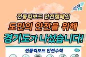 경기도는 11월 한 달간 경기도의회, 경기도교육청, 경기 남ㆍ북부경찰청, 경기도교통연수원, 한국도로교통공단, 시군 등 유관기관과 함께 전동킥보드 안전문화 합동캠페인을 추진한다. 도는 전동킥보드 주요 사고 다발지역 및 유동인구 밀집 지역을 중심으로 유관기관 및 시민단체와 연계해 전동킥보드 필수 안전수칙이 담긴 홍보물을 배부하고 경찰과 협력해 현장 계도 활동도 병행한다. 시군별 전광판, 현수막 등 지역 홍보 매체를 적극 활용해 전동킥보드 안전수칙 홍보도 적극 확대할 계획이다. 특히 전동킥보드 사고 발생의 주요 원인인 면허 자격, 이용 연령, 안전모 착용, 동승 금지 의무 등을 집중적으로 안내하고, 교육청과 협력해 청소년 대상 교육도 강화할 방침이다. 윤태완 경기도 광역교통정책과장은 “이번 안전캠페인은 전동킥보드 안전이용 문화가 안착되는 계기가 될 것”이라며 “도에서는 캠페인 기간이 끝나더라도, 경찰청·교육청 등 유관기관과 지속 협력해 전동킥보드 안전사고 예방에 총력을 다할 계획이다”고 말했다. 현재 경기도 내 운영 중인 공유 전동킥보드는 6만 7,866대로 31개 시군 전역에서 운행되고 있