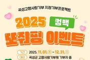 곡성군이 11월 1일부터 12월 31일까지 두 달간 곡성군 고향사랑기부제 “컴백 또줘핑~~”이벤트를 진행한다. “컴백 또줘핑” 이벤트는 곡성군이 지역 농·축협 및 농협중앙회 곡성군지부와 협력해 고향사랑기부제를 통해 지역 농산물 홍보와 지역문제 해결에 기여하기 위해 마련됐다. 곡성군 고향사랑기부 공식 인스타그램에 소개된 소액 기부자들의 따뜻한 사연과 지역문제에 대한 공감에 보답하고, 앞으로 기부에 참여할 분들에게도 감사의 마음을 전하고자 하는 취지를 담고 있다. 두 달 동안 10만 원 이상 기부자에 대해 매달 500명을 무작위 추첨해 1만 원 상당의 지역 쌀을 증정한다. 참여 방법은 고향사랑e음 또는 위기브 등 민간 플랫폼을 통해 곡성군에 기부하면 자동으로 응모되며, 당첨자는 개별 통보된다. 곡성군은 인구감소와 고령화 문제 해결을 위해 다양한 지역 맞춤형 사업을 발굴하고 있다. 현재 고향사랑e음을 통해 ‘곡성에 소아과를 선물하세요 시즌2’, ‘유기동물 보호센터 운영 지원’ 등의 지정기부사업을 추진하며 기부금을 모금 중이다. 군 관계자는“지역문제에 공감해 주시고 응