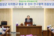 장성군의회 의원연구단체 ‘정책개발연구회’는 지난 27일 군의회 상임위원회의실에서 ‘장성군의회 자치법규 발굴 및 정비 연구용역 최종보고회’를 개최했다. 그동안 정책개발연구회는 조례 발굴 및 정비 연구용역을 통해 장성군 지역 실정에 맞는 신규 조례 제안, 정책 변화에 맞는 조례 정비 등 자치법규를 체계적으로 연구하며 입법 실효성을 높이는 연구 활동을 활발하게 추진해 왔다. 최종보고회는 5개월간 진행한 연구용역의 최종 결과물을 공유하는 자리로 연구용역을 수행한 나라살림연구소는 최종보고회를 통해 ▲지역 실정에 맞는 신규 조례 제안 ▲주민 요구와 불편 사항을 점검한 조례 정비 제안 ▲ 유사 중복 조례의 통·폐합에 관한 사항을 중점적으로 분석한 것을 바탕으로 구체적인 제·개정 방향과 정비안 등을 제시했다. 이에 김연수 대표의원은 “이번 연구용역은 단순한 조례 발굴과 정비를 넘어 장성군 조례의 실효성을 높이고 행정의 효율화를 통해 주민 복지를 더욱 증진시키기 위해 추진하게 됐다”라고 하며 “신뢰받는 의회로 거듭나도록 연구 결과를 잘 활용해 실제 정책과 제도에 반영될 수 있도록 더욱 열정적인 의정활동을 펼쳐나가겠다”고 밝혔