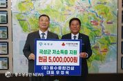전남 곡성군은 지난 17일 여수시 화장동에 소재한 (유)용수종합건설(대표 우정욱)에서 곡성군 노인맞춤돌봄서비스 이용 어르신을 지원하기 위해 현금 500만 원을 기탁했다고 18일 밝혔다. 이번 기부금은 노인맞춤돌봄서비스 지원사업 수행기관인 곡성노인맞춤돌봄센터에서 돌봄서비스를 제공받는 912명의 어르신을 대상으로 추진되는 프로그램 운영에 활용될 예정이다. 기탁식에는 우정욱 대표를 포함하여 3명이 참석했으며, 우정욱 대표는“일상생활 영위가 어려운 취약 어르신들에게 적절한 돌봄서비스가 제공될 수 있도록 작은 정성을 보탤 수 있엉 매우 뜻깊다”라며, “앞으로도 지속적인 나눔 활동을 이어가겠다”라고 덧붙였다. 조상래 곡성군수는“어려운 경기 상황에서도 지역사회 취약 어르신들에게 온정을 베풀어 주신 용수종합건설 우정욱 대표에게 깊은 감사의 뜻을 표하며, 기부금이 노인맞춤돌봄서비스 대상 어르신들에게 잘 활용될 수 있도록 하겠다”라고 전했다.