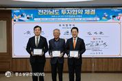 영암군에 534억원 투자, 140명 고용 규모의 2개 수산식품 기업이 들어선다. 24일 전라남도청에서 전라남도와 영암군이, ㈜해진수산, ㈜해진식품과 투자협약을 체결하고 협력을 약속했다. 이날 협약에 따라 ㈜해진수산은 332억원을 투자해 영암군 삼호읍에 마른김 생산시설을 조성하고, 80여 명을 고용할 예정이다. ㈜해진식품도 같은 지역에 202억원을 투자해 조미김 생산시설을 구축하고 60여 명의 일자리를 창출할 계획이다. 영암군은 인·허가 신속 처리, 기반시설 확충 등 행정 지원으로 이번 협약을 뒷받침하고, 지역·기업 상생모델로 지역경제 활성화를 견인한다는 방침이다. 이날 투자협약에는 두 기업의 임한택 대표, 김영록 전라남도지사, 윤재광 영암군부군수 등이 함께 했다.