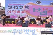 전남 무안군은 지난 1일 무안읍 갯벌낙지축제 주무대에서 2025년 무안군 일반농산어촌개발사업 성과발표회 ‘난리난리 3탄’을 낙지축제와 연계하여 개최했다. 이날 행사에는 공연자 200여 명과 김산 군수, 이호성 군의회 의장, 정길수 도의원, 정은경 부의장 등 군의원과 지역 내·외빈 등이 참석해 함께 축하했다. 이번 축제는 낙지 축제, 도시재생 마을관리사회협동조합, 난리난리 축제 등이 함께 어우러져 한층 더 풍성해졌다. 행사는 풍물패 길놀이 공연을 시작으로 무안군이 전국 최초로 추진한 마마학당 어머니들의 노래와 댄스 공연을 비롯해 읍·면별 13개 동아리팀의 댄스·장구· 노래·요가 등 다채로운 무대가 이어져 함께한 주민과 관광객의 환호와 박수를 받았다. 이와 함께 운영된 15개 전시·체험 부스도 큰 인기를 끌었다. 버나놀이와 남사당 체험, 탁구·드립커피·키링 만들기 등 다양한 체험 프로그램이 진행됐으며, 서예작품 전시 등 풍성한 볼거리도 마련됐다. 특히 고구마와 단호박으로 만든 간식류, 단감 시식, 도시재생 마을관리사회협동조합의 파전과 단호박죽 등은 관광객들의 관심과 입맛을 사로
