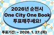 순천시가 오는 27일까지 2026년 한 해 동안 순천시민이 함께 읽을 ‘2026년 순천시 One City One Book’ 선정을 위한 시민 투표를 진행한다고 밝혔다. One City One Book 시민 투표는 온라인과 오프라인으로 진행된다. 온라인은 네이버폼에서 진행되며, 온라인 투표 후 인스타그램 이벤트에 참여하면 추첨을 통해 100명에게 커피 기프티콘을 증정하는 이벤트도 운영한다. 오프라인은 순천시립도서관(삼산, 그림책, 기적, 조례호수, 신대, 어울림, 해룡, 풍덕)에서 참여 가능하다. 순천시 One City One Book은 2004년 임철우 작가의 소설 '등대'를 시작으로 시민 참여를 통해 한 권의 책을 선정하고 순천시민이 함께 읽는 범시민 독서진흥 운동이다. 2026년 One City One Book은 시민들에게 301권의 후보 도서를 추천받아, 1차로 순천시립도서관 자료선정심의회 회의를 통해 30권을 선별했으며, 독서 전문가로 구성된 선정심의회 회의로 총 5권의 후보도서가 결정됐다. 후보 도서는 '가장 평범한 아픔(김명희)', '공감에 관하여(이금희)', '먼저 온 미
