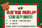 광양시가 지역민의 건강생활실천을 돕기 위해 모바일 걷기 앱 '워크온'에서 오는 12월 1일부터 12월 20일까지 ‘추운겨울 체온UP 12월 걷기 챌린지’를 운영한다. 걷기 챌린지는 1걸음당 1마일리지, 1일 최대 8,000마일리지까지 적립되며, 기간 동안 13만 보를 달성하면 13만 마일리지가 쌓여 모바일상품권(5천 원) 응모가 가능하다. 시는 목표 걸음을 달성한 참가자 중 추첨을 통해 800명에게 모바일상품권을 지급할 예정이다. 광양시민이면 누구나 참여할 수 있으며 참여 방법도 간단하다. ▲모바일 앱 ‘워크온’ 설치 ▲‘광양시 공식 커뮤니티’ 가입 ▲챌린지 탭에서 ‘광양시 걷기 챌린지’ 선택 후 ▲스마트폰을 소지하고 걸으면 된다. 광양 지역 제한이 설정돼 있어 참여 시 반드시 휴대폰 위치설정을 켜 두어야 하며, 자세한 사항은 광양시보건소로 문의하면 된다. 반미순 건강증진과장은 “겨울철은 활동량이 크게 줄어드는 시기인 만큼, 짧은 시간이라도 꾸준히 걷는 것이 건강 유지에 큰 도움이 된다”며 “이번 걷기 챌린지가 광양시민들의 걷기 습관 유지에 도움이 되기를 기대한다”고 말했다.
