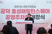 박강수 마포구청장은 12월 3일 오후 5시, 공덕역 10번 출구 앞 광장에서 열린 ‘공덕 효성해링턴스퀘어 공영주차장 개장식’에 참석해 시설 개장을 축하했다. 이번에 문을 연 공덕 효성해링턴 스퀘어 공영주차장(도화동 25-13)은 총 21면 규모로 조성된 거주자우선주차장으로, 구는 공공기여를 통해 확보한 이 공간을 주민들에게 개방해 운영하기로 했다. 아파트와 상가, 오피스가 밀집한 도화동·공덕동 일대는 주차 수요에 비해 공간이 부족해 주민과 방문객 모두가 지속적인 불편을 겪어 왔다. 이번 공영주차장 운영을 통해 지역에서 꾸준히 제기돼 온 주차 불편이 상당 부분 해소될 것으로 기대되며, 생활권 내 주차 편의도 한층 개선될 전망이다. 행사는 식전 공연을 시작으로 개회 및 내빈소개, 경과보고에 이어 박강수 마포구청장의 기념사가 진행됐으며, 이어 테이프 커팅과 기념촬영 후 시설 라운딩이 이어졌다. 추운 날씨 속에서도 박강수 마포구청장을 비롯해 백남환 구의회 의장, 지역 주민 등 약 100여 명이 참석해 주차 공간 확충의 성과를 함께 축하했다. 박강수 마포구청장은 “복잡한 도심 속